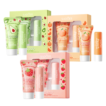 OEM SADOERプライベートラベル卸売ギフトボックス保湿修理ストロベリーアンチクラックハンドクリームリップクリームセット